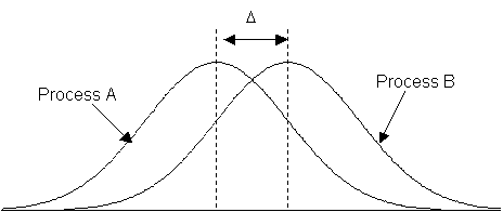 ความแตกต่างวิกฤต (Critical difference) เป็นความแตกต่างเชิงปฏิบัติที่ผู้ทำการทดลองต้องการจะตรวจสอบพบ ด้วยความน่าจะเป็นที่สูง โดยทั่วไปแล้วผู้ทดสอบจะกำหนดให้มีโอกาสตามความคลาดเคลื่อน Type II error (b) ที่จะพลาด โดยตรวจไม่พบว่ามีความแตกต่าง ความสัมพันธ์ระหว่าง n , D และ s เมื่อขนาดสิ่งตัวอย่างเพิ่มมากขึ้น การประมาณค่า Parameter ของประชากรที่แท้จริงยิ่งจะมีความถูกต้องมากขึ้น ในทางทฤษฎีแล้วค่าเบี่ยงเบนมาตรฐานของค่าเฉลี่ย (SE) รูปข้างล่างนี้จะช่วยให้มองเห็นภาพ ได้ง่ายขึ้น