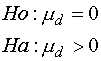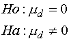 จาก 3. ตั้งสมมติฐาน หากข้อมูลทั้งสองกลุ่ม ไม่แตกต่างกันแล้ว d = 0 และนี่คือข้อสมมติฐาน ถ้ากำหนดให้ md = d