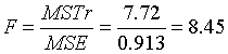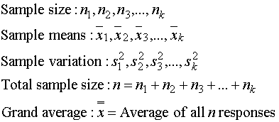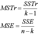 MSTr : Mean square for treatments (Between-sample) MSE : Mean square error (Within-sample) อัตราส่วนระหว่าง MSTr กับ MSE คือค่า สถิติที่ใช้ทดสอบ ANOVA ( Test statistic) ซึ่งเราเรียกย่อๆ ว่า F