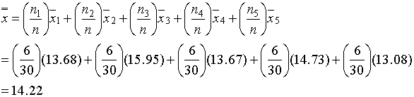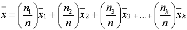 คำว่า Grand average คือค่าเฉลี่ยของค่าเฉลี่ย อีกที ซึ่งก็คือการให้ค่าน้ำหนักหรืออัตราส่วนของ Sample size เทียบกับ Total sample size และค่าเฉลี่ยแต่ละค่า ตามสมการนี้