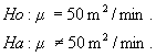 ( เขียนเป็นภาษามนุษย์) Ho : อัตราการไหลของน้ำหล่อเย็นเท่ากับ 50 ลูกบาตรเมตรต่อนาที ( เขียนเป็นภาษาทางวิชาสถิติ ) Ho : m = 50 m2/min.