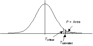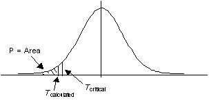 กรณีการทดสอบน้อยกว่า ( Lower-tailed test) ค่า P-value จะเท่ากับพื้นที่ด้านซ้ายมือของค่า -Z หรือ -t ที่คำนวณได้( Tcalculated) ในกรณีนี้ a ก็จะเท่ากับพื้นที่ตั้งแต่ซ้ายมือของค่า Tcritical ไปจนสุดขอบ