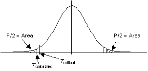 กรณีการทดสอบไม่เท่ากับ (Two-tailed test) ค่า P-value จะเท่ากับผลรวมของพื้นที่ด้านซ้ายมือของค่า -Z หรือ -t และทางขวามือของ ค่า Z หรือ t ที่คำนวณได้ ในกรณีนี้ a ก็จะเท่ากับสองเท่าของพื้นที่ตั้งแต่ซ้ายมือของค่า Tcritical หรือ -Tcriticalไปจนสุดขอบ