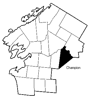 New York State Legislature created the Town of Champion from the Town of Mexico, now in Oswego County, 14 March 1800, making it one of the earliest townships of Jefferson County. At that time it included all of the Town of Denmark, Lewis County, north of the Deer River. Today's Champion is bounded on the west by Town of Rutland, northwest by Le Ray, northeast by Wilna, and the rest of the border is with Lewis County. Populated areas include Champion village, Great Bend, named for a bend of the Black River, and West Carthage village.