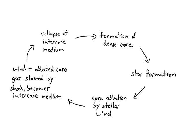Core and intercore medium has a temperature of 10-30 K. The stars