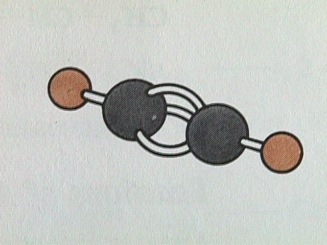 Hydrocarbons containing one or more triple bonds are called alkynes. Being unsaturated compounds, alkynes undergo basically the same types of reactions as alkenes. SInce each carbon of the triple carbon carbon bond can only bond to one other atom, alkynes do not exhibit geometrical isomerism, only structural isomerism. The linear arrangement of atoms about the carbon carbon triple bond can be seen in the simplest alkyne, ethyne.