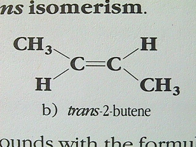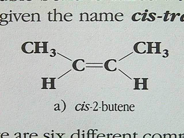 In alkanes, there is free rotation of the molecule about the single bonds. In alkenes, the carbon carbon double bond is quite rigid, preventing any rotation. If each carbon in the double bond has two different groups attached to it, it is possible to have geometric isomers. The simplest alkene in which this type of isomerism can occur is 2 butene. The molecule with both methyl groups on the same side of the double bond is named cis 2 butene, while the isomer with the methyl groups diagonally across the double bond is called trans 2 butene. This type of isomerism is given the name cis trans isomerism.