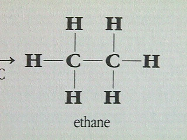 Ethane can be formed by first removing a hydrogen atom from two methane molecules, then combining the two methyl fragments, CH , to restore the octet around each carbon atom. The arrangement of the four electron pairs around each carbon in the ethane molecule will still be tetrahedral.