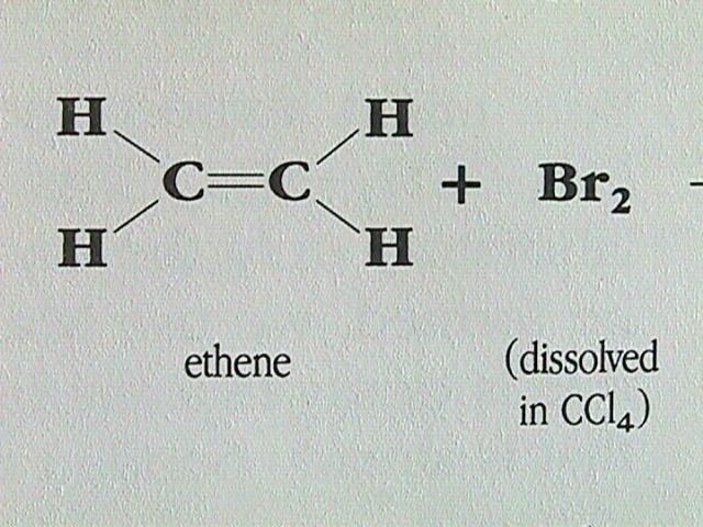 Similarly, in the common test for an unsaturated carbon carbgon bond, two moles of bromine add to one mole of an ethyne.