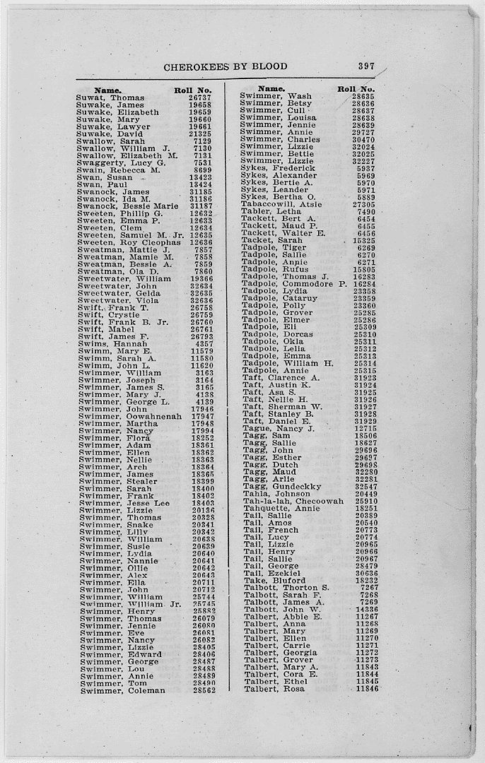 I have looked on THE FINAL ROLLS (DAWES) and found no Swords listed at all. However, this is from the Oklahoma side I believe.. this is noted at the bottom of the page where I got the rolls from....