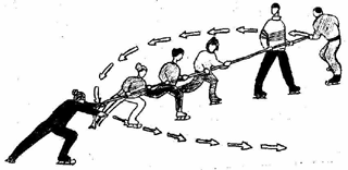 faster. Simultaneously two lines of players move counterclockwise, moreover
