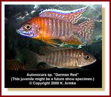 This is the first Peacock that I have tried to keep. The male of this species has just grand color and I could not pass it up. I got these fish from a local store (Chris and Carol's Living World Pets, Kennewick WA.) and they got them from Wet Thumb Aquatics (see links page). It is a good idea to keep several females to each male with this genius of Cichlid. Lots of rocks are a must so the females have a place to hide from the male when he is on the prowl. A good community fish but should not be kept with other peacocks as they will cross breed.
