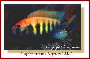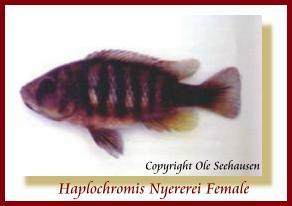 This is another very nice looking Lake Victoria Haplochromis. The males have such bright colors but the poor females are so plain. I guess we can't have everything. Make sure your tank has lots of rocks and hiding places so the females can hide from the male. Males tend to get a little aggressive towards the females. On the good side they do not seem to be aggressive towards other fish. It's not a good idea to have any real wimpy fish in with them but as far as I can tell they pretty much leave other species alone. DO NOT have more then one Haplochromis species in the same tank as the males will fight and they will also cross breed with other females. Please DO NOT allow this to happen it is becoming harder and harder to get these fish from the wild so it is up to breeders to keep this fish the way it came to us. DO NOT cross breed or inbred your fish. OK I will climb down from my soap box now.