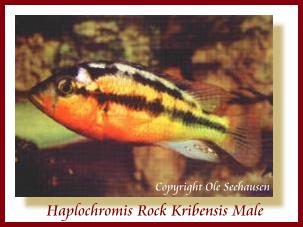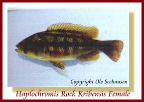 This is another nice looking Haplochromis from Lake Victoria. While the color is not as flashy as many other species it is still a nice looking fish. This fish does enjoy eating algae as well as insect larvae but does well on Cichlid flake food. In the wild this is a largely shallow water species, with the highest densities in depths of 2.5 to 4.5 meters. They like to have lots of rocks to hide around and under also they will eat any algae that grows on them. From what I have read it seems to be a fairly calm Cichlid but care should be given to keep several females per male. Many Haplochromis males are very aggressive with the females and the more females you have the less chance of a male killing one of them.