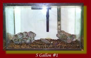 5 Gallon tanks Sub straight: silica sand and crushed coral Filtration: 1 - penguin mini Temp: 82 to 84 pH: 8.0 Filtration: 1 - Aqua clear mini Sub straight: small gravel Temp: 82 to 84 pH: 8.0 Return to: