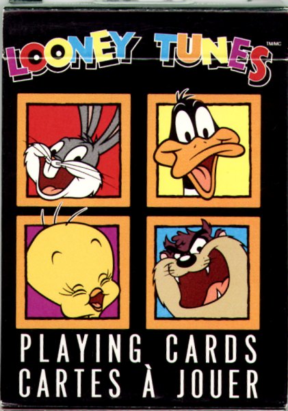 Received: 1995(?) These were probably a Christmas or birthday present, but I don't remember any of the details now. It's a nice deck of Looney-Tunes themed cards containing pictures of most of the popular characters (even Petunia Pig). While it's not particularly interesting or fancy, it is a high-quality deck with really nice printing. Click on an image to enlarge.