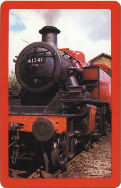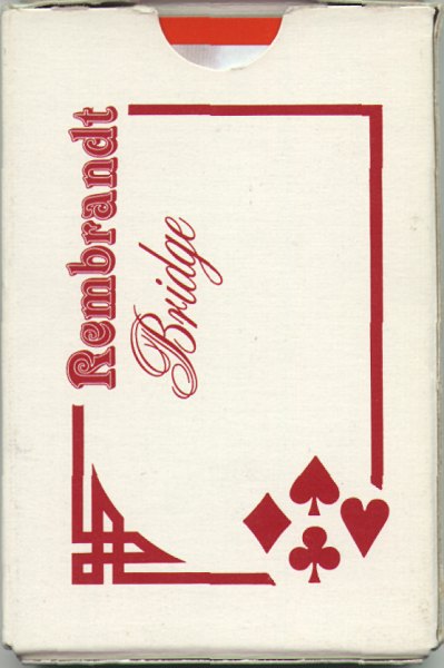 Received: 2001 I don't recall where I got this deck of cards, but it must have been fairly recent. I suspect it was a gift Santa bought while he was on his summer vacation, as it looks like the kind of thing you might get at a gift shop. :) The deck features a handsome train engine, and says Rembrandt Bridge on the back. Why? Perhaps there are a lot of bridge players in Quebec, where these cards were manufactured... Click on an image to enlarge.