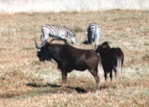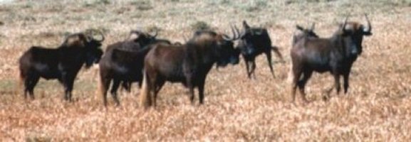 Het belangrijkste onderscheid met de blauwe gnoe is hun witte staart, de blauwe gnoe heeft namelijk een zwarte staart. De gnoe heeft lange haren onder aan de kin en op de neus, tevens ook op de nek. Zijn voeding bestaat voornamelijk uit gras. Ze kunnen tot 20 jaar oud worden en leven in troepen van 6 tot 50 dieren.Wild Parken (Game Reserves)Zowel de mannelijke dieren als de vrouwelijke dragen horens. Gedurende de paartijd bakenen de mannetjes hun territorium af, dan zijn ze ook het meest agressief. De gnoe graast dikwijls samen met andere dieren.