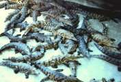 De krokodil is een gevaarlijke predator met vlijmscherpe tanden. Voornamelijk eet hij kleine dieren. Oudere krokodillen eten wel eens grotere vissen en zelfs zoogdieren zoals een impala of zelfs een leeuw die komen drinken aan de waterkant. In krokodillen farms krijgen ze meestal kip te eten.Vaak ziet men ze rusten op het land met hun mond open. Men denkt dat dit ter afkoeling is. Het geslacht van hun nakomelingen kunnen ze controleren door de temperatuur van de eieren te regelen. Dit doen ze door meer of minder zand op de eieren te doen.