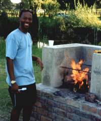 De volgende morgen leert André ons golfen, een hobby van veel Afrikaners. De zeer grote tuin is weliswaar omringd door een hekken dat onder hoogspanning staat. Na een tijdje oefenen beland ons balletje juist achter dit hek. Niemand van ons is ongevoelig voor hoogspanning daarom laten we braafjes het balletje liggen. Als afsluiter van onze tweede dag in Zuid-Afrika houden we nog eens een braai.