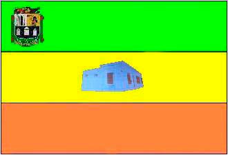 It consists in a field with approximated ratio 2:3; this is, square and half of length, divided in three horizontal stripes with equal size: green (superior), yellow (central) and orange (inferior). Complements the design the diagonally placed facade of “Casa La Blanquera” something like “The White Place’s House”) on the center of yellow stripe and the Municipality’ Coat of Arms to the canton on the green stripe. The green stripe symbolizes the reborn of a hope; the yellow one remembers the wealth of earth and rivers of the Municipality and the orange stripe alludes to the dusk of the plains region in which it’s located. The Blanquera House, local historical monument and the Coat of Arms reaffirms the municipal identity.