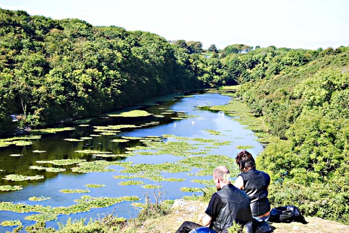 Located on the South Eastern side of the Castle Martin Peninsular, Bosherton with its old church and cafe, has become famous for its lily ponds.They were formed in the 18th / 19th centuries by blocking three narrow limestone valleys to form shallow lakes fed by clear spring water. As well as being noted for its Otters, waterfowl.and lilies, the ponds are well stocked with Pike, Tench, perch, Roach and Eels. Fishing permits are available at The Olde Worlde cafe, Bosherton, pictured below. There are lovely walks around the ponds crossing a variety of little bridges as you go, or follow a pathway down to the beach at Broadhaven South Facilities: Small car park Toilets Cafe nearby