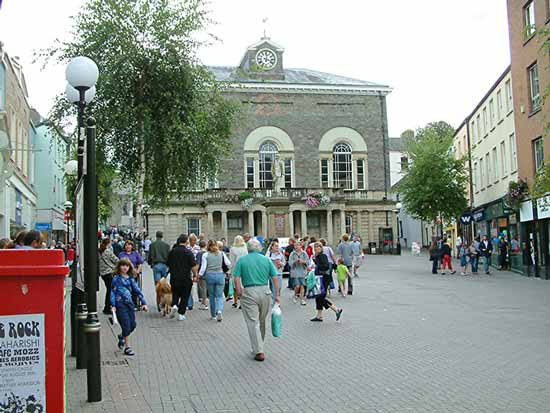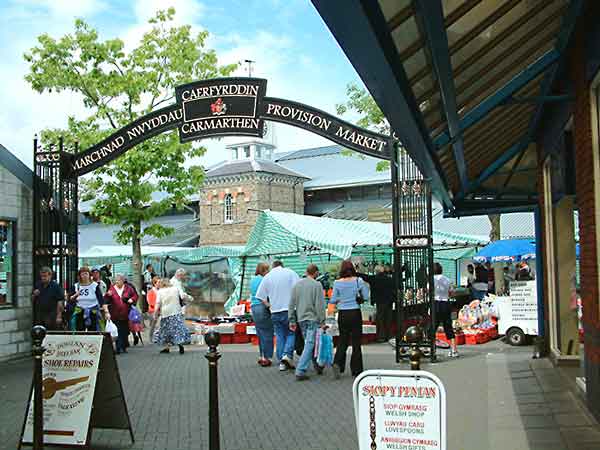 Carmarthen is one of the largest towns in West Wales, and is an ideal shopping centre for tourists to this area of Wales. Pictured left is the open market, and the building you see behind, houses the indoor market with stalls offering antiques, local produce, and those last minute souvenirs for your loved ones. The town is steeped in history and legend dating back to the Roman period. It has its own castle, but unfortunately not much left of it. There is a good selection of shops, and parking is good. |
