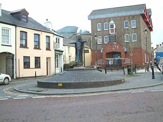 Just minutes away from Jct 34 of the M4 motorway is the ancient hill town of Llantrisant,so if you are passing and have an hour to spare, it is worth visiting. There is evidence of a settlement here dating back to 500AD.In the early 1800s Llantrisant was an important market town.Whilst the markets and fairs took place on the castle green,the bullring (main photo) was used for bull baiting.This practice was disallowed in1827. Also in the main photo is the statue of Dr William Price,the pioneer of cremation, who caused an outcry by cremating the body of his dead son. A more recent event commemorated the presence of American soldiers who during the second world war camped on Llantrisant common.A plaque giving details can be found on the town entrance to Llantrisant common. The 298 acre common is managed by the Llantrisant Town Trust on behalf of the freemen of Llantrisant who claim descent from the longbowmen who took part in the Battle of Crecy in 1346. To commemorate the 650th anniversary of the battle, and the granting of a charter to the town, the council, in conjunction with the Llantrisant Town Trust, erected a memorial on the Castle green. There are some lovely old buildings to be seen, The Model House craft and design centre, lovely old church, castle ruins, little pubs and a coffe shop selling gifts. |