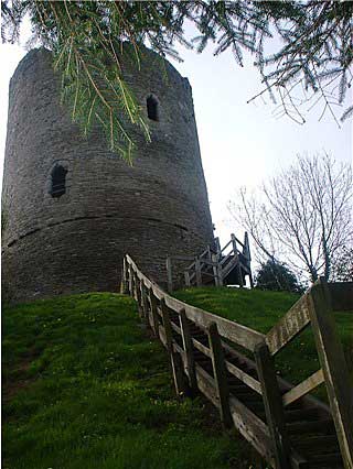 | Driving from Talgarth to Builth Wells I regularly pass this castle so I decided to stop and have a look. It consists of a 80ft keep standing on a large mound hidden amongst trees just North of the small village of Talgarth. It was first fortified by Richard Fitz Pons of Clifford (Herefordshire) soon after the the Norman conquest of Brycheiniog. The tower was probably built by his descendant Walter De Clifford (1221-1263) and was modified by subsequent owners (So it says on the plaque at the entrance) It was last fortified by Owain Glyndwr but by 1521 it was "beyond repair" It is now owned by C.A.D.W. (Welsh Historic Monuments). There is a "pet friendly" caravan park nearby at Anchorage Caravan Park Bronllys Near Brecon 01874 711246 |