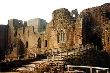 | This castle is located in the beautiful Wye Valley on a steep slope with a moat cut from the rock on which the castle stands. The castle is built from red sandstone and is in good condition. The 12th century keep still shows features of three halls in the building. It remained unchanged until the 13th century when it came into the possesion of the de Valence family. The castle was then renovated to form a square inner bailey with large towers at three of the corners, and a huge gatehouse. From the gatehouse tower, a bridge crosses the moat to a barbican although only parts of this can now be seen. The South East tower housed a domestic residence and part of a staircase and large fireplaces are still in evidence. By the 16th century the castle was unoccupied, but did encounter a siege during the civil war, although the castle is still mostly intact. Goodrich is located in picturesque scenery overlooking the River Wye and is well worth a visit. |