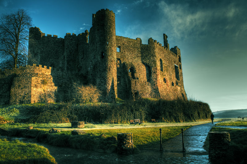 | Laugharne castle, a fine example of a Norman fortification, probably founded in the early 12th century as a earth and timber fortification, though as it now stands dates from the mid to late 13th century. The castle was later adapted to provide stylish living accomodation. In the 13th and 14th centuries it was the home of the de Brian family. Much of the castle survives with it's two large towers, and gatehouse. The transformation of the castle into living accomodation was by Sir John Perrot, who was granted Laugharne by Elizabeth 1 in 1584. The castle saw action during the Civil War, after which it declined into a ruin. Later it was in the ownership of writer Richard Hughes. Dylan often stayed with Hughes and used the gazebo in the castle grounds when writing. |