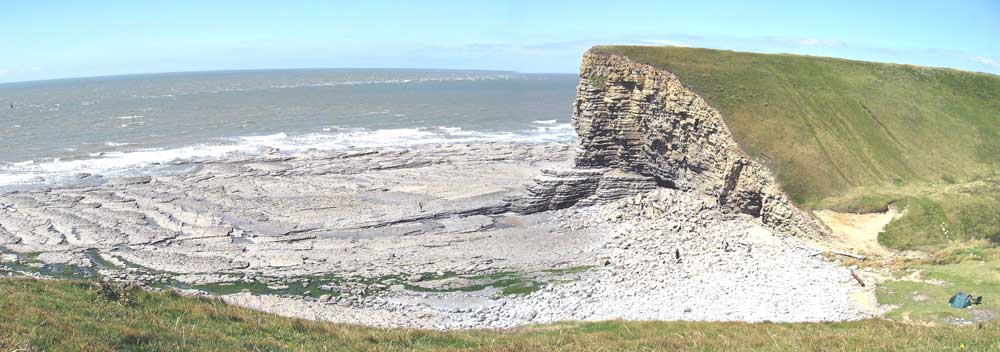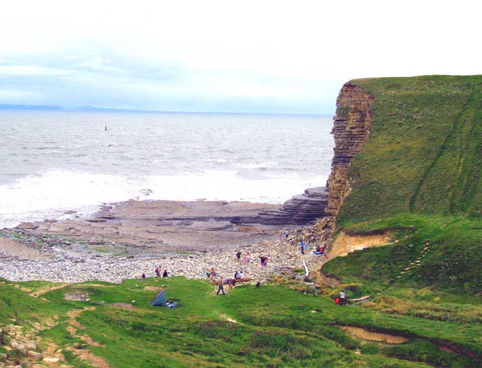 Marcross is mostly rocky but an interesting beach for the children. There are fossils to be found if you look carefully. It is also a popular fishing beach. There is car parking (about �1.50) payable on entry to car park, which is on top of the cliffs. Take care when children are leaving the car! From here it is a short walk to the lighthouse at Nash Point. There are toilet facilities and refreshments. Beach access not suitable for disabled. Please keep children away from the foot of the cliffs, owing to rockfalls. |