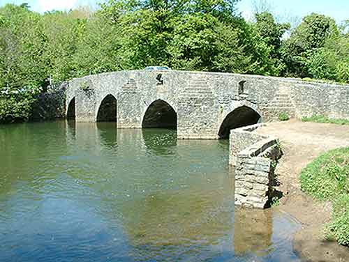 | Near Merthyr Mawr is this 15th century bridge known locally as the "Dipping Bridge" Sheep were given their regular "dip"or wash by being pushed through the holes that can be seen in the side of the bridge, Near the bridge once stood an inn, where, it has been said, travellers were murdered by the landlord. When the inn was demolished in the early 20th century, the workmen discovered skeleton remains in the grounds of the inn. |