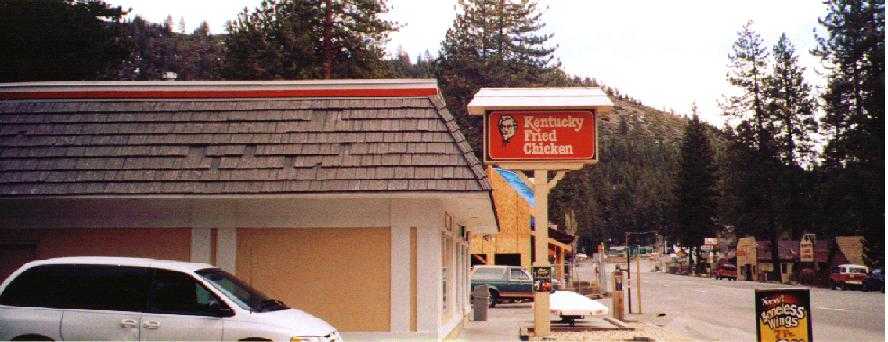 01/2003. Older signage style at this location. Probably still up due to the toughness of changing signs at Lake Tahoe. In the background, Kings Beach along the highway.
