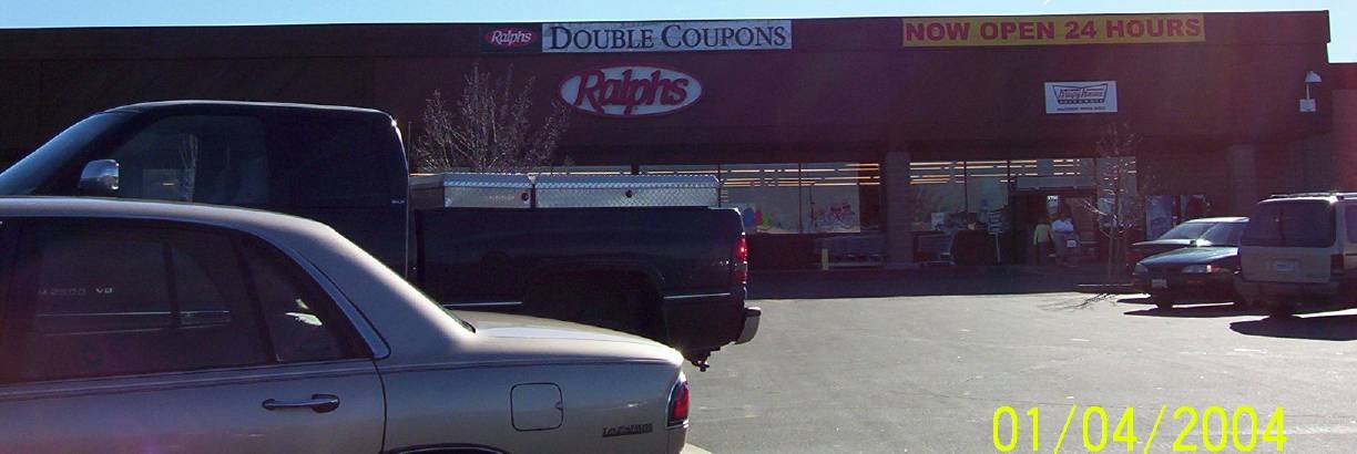 01/2004. Auburn, CA, Bell Road/Grass Valley Highway. Former Albertsons, purchased by Ralphs in October 1999. Store retains an Albertsons interior with the last remodel happening in 1988, so the interior of this store is a blast back to the 1970's. |