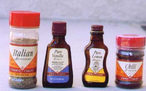 | New format Crown Colony items, purchased as the line was being discontinued sometime around 1996 and spices converted over to the Safeway label. When this happened, the variety of the spices fell. For instance, Crown Colony's product mix included a full assortment of extracts. When the conversion to Safeway Brand started, the only extract offered under the Safeway label was (and still is) Vanilla. | |||||||||||||||||||||||
