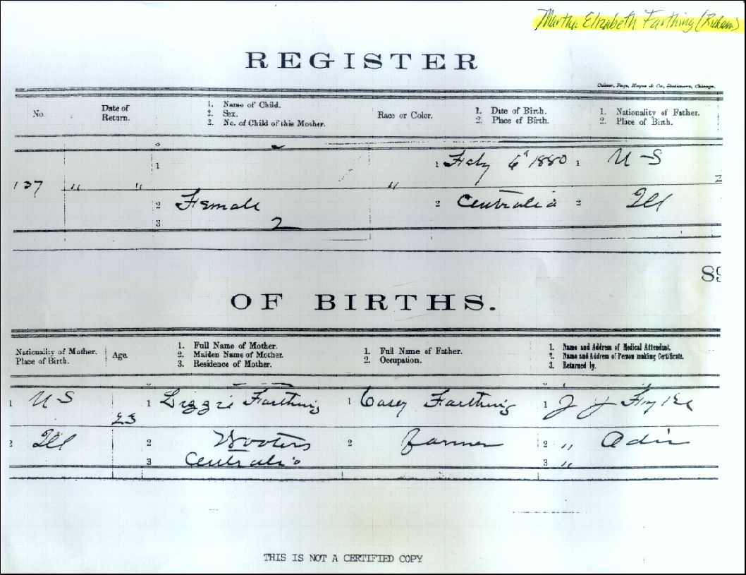 Marion Co. , Illinois. Captola and Martha are buried in Elmwood Cemetery in