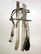 —atado al tronco— aún cruzado por el viento, está erguido suma y resta a esa cifra que lo corona la cicatriz de su propia angustia repetida 2 veces no hay otra búsqueda que el pago de esa caída por la caída: el poder y el centro de sus giros está en la fuerza que sus pasos ponen en ello su poderoso cuerpo, el logro, como homenaje la aventura de sus desplazamientos en torno al poste —columna del centro—