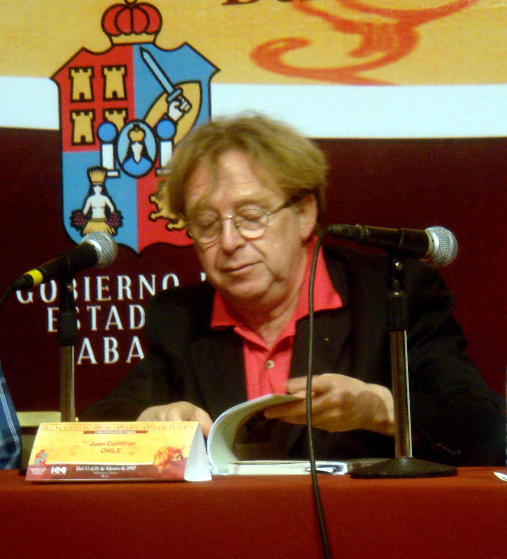 Me voy estoy cansado tengo derecho a andar después de una jornada de picar esta tierra doblemente con manos y cabeza de esconder esta testa bajo el suelo para gritar a gritos reclamar con el pecho hacia el cielo ser mirado No vine yo a este día a mí no me invitaron rasgué mis vestiduras y mi pecho para mostrar la sangre y su latido y aquí me tienen sudoroso con el ala dispuesta a cruzar el charco una vez más en busca de otro arado Soy pájaro y gusano soy este puño prieto que cava y salta y vuela pues me hicieron así quienes sabían mi diario transcurrir mi quieto canto Fui el aguador y el vino el héroe y la víctima el testigo fui la tierna extensión cuando la noche reclamaba éstos mis dedos tuve ideas las ví tuve una casa enclavada en la piedra y el paisaje Ahora tomo vuelo busco apoyo para correr la pista con un gesto tal vez una sonrisa Me voy no es un pañuelo es la pluma agitada que deja a lo lejos un surco en esta pista para volver de nuevo. Juan Cameron (Valparaíso, Chile, 1947) ha publicado entre otros títulos Perro de circo (1979), Cámara oscura (1985), Video Clip (1989), Como un ave migratoria en la jaula de Fénix (1992), Visión de los ciclistas y otros textos (1998), Versos atribuidos al joven Francisco María Arouet y otros textos desclasificados (2000) y El bolero de los ángeles (2006). Premios Gabriela Mistral (1982), El Mercurio (1996), Municipal de Literatura (Valparaíso, 1996), Villanueva de la Cañada (Madrid, 1997), Consejo Nacional del Libro (1999) y Ciudad de Alajuela (Costa Rica, 2004), entre otros. |