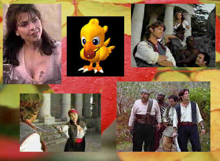 | Deux hommes et une femme discutaient : ''C'est son enfant.'' dit Gaoler. ''Le gamin ?'' demanda Korneli. ''Non, celui qu'elle porte.'' ''Alors, c'est la femme que nous devons tuer.'' dit Eliza. Le d�mon apparut dans un brouillard noir et demanda : ''Vous l'avez trouv� ?'' ''Oui, Scratch. C'est l'enfant que cette femme porte.'' dit Gaoler en pointant son bac d'eau o� l'image d'une femme y figurait. ''Je m'en doutais. Ce sont toujours eux qui se mettent dans mon chemin. Je vous laisse le plaisir de la tuer, mais soyez s�r de r�ussir. N'oubliez pas que c'est l'enfant qui conduira � ma perte.'' dit Scratch en disparaissant. ''Allez au travail !'' dit Korneli. * * * * * * * * * * * * * * * * * * * Sur le Nomade, tout le monde �tait joyeux. Doubar et Maeve chantaient et Sinbad, Firouz, Rongar et Dermott jouaient au jeu invent� par Firouz : la boule qui roule pour faire tomber les balles. Rongar s'occupait de remettre les quilles en place et Firouz inscrivait les pointages de Sinbad et Dermott. Sinbad fit rouler une boule qui fit tomber toutes les quilles, except� une, mais Rongar la poussa discr�tement avec son pied. Dermott s'�cria : ''Cette fois je t'ai vu, Rongar ! Vous complotez pour que je perde !'' En effet, Sinbad avait le triple du pointage de Dermott. ''Je n'ai rien fait !'' s'exclama Rongar en essayant de retenir son rire. Mais, il �clata et tous les autres de m�me. Sinbad dit : ''On recommence et cette fois, pas de triche.'' Firouz prit une nouvelle feuille et Rongar repla�a les quilles. Eveam monta sur le pont � ce moment, faisant tomber toutes les quilles avec la porte. Rongar applaudit et s'exclama : ''Un abat !'' ''Vous jouez � ce jeu de Firouz ! Je peux y participer ?'' demanda Eveam. ''Bien s�r.'' r�pondit Firouz. * * * * * * * * * * * * * * * * * * * Quelques minutes plus tard, Eveam gagnait la partie et Dermott tentait de surprendre Rongar � tricher, encore une fois. Elle lan�a la boule et fit un quatri�me abat de suite. Eveam sauta de joie et Dermott s'�cria : ''Je t'ai vu !'' ''Tu ne peux pas m'avoir vu, puisque je n'ai pas trich�.'' dit Rongar. ''Tu es seulement jaloux parce que je suis meilleure que toi.'' aga�a Eveam. ''Mais qu'est-ce que c'est que?? demanda Sinbad. Un bateau venait de passer � toute vitesse � quelques m�tres du Nomade. L'�quipage semblait terroris�. Sinbad leva la main pour saluer, mais aucun hommes ne r�pondit � son salut. ''Pourquoi sont-ils si press�s ?'' demanda Firouz. Ils eurent vite leur r�ponse, car un nouveau bateau arriva. Un canon apparut sur le pont et un boulet fut propuls� vers le Nomade. ''Abritez-vous !'' cria Sinbad. Le boulet atterrit sur le pont, mais ne le troua pas. Il roula et fit tomber toutes les quilles. Rongar applaudit et Firouz courut observer ce boulet qui ne faisait pas couler les bateaux. L'autre bateau accosta le Nomade et Sinbad ayant sorti son �p�e attendit l'attaque qui ne vint pas. Un des matelots de l'autre bateau cria : ''Capitaine ! C'est Sinbad !'' Talia monta � ce moment sur le pont et s'�cria : ''Sinbad !'' Elle sauta sur le Nomade et au cou de Sinbad. Sachant qu'il �tait mari�, elle l'embrassa sur la joue. Maeve qui �tait maintenant aux c�t�s de Sinbad, dit : ''Tu �tais mieux !'' ''Pourrais-je avoir une explication sur l'origine de votre � attaque �.'' demanda Sinbad. Talia regarda � l'horizon et vit l'autre bateau s'enfuir. Elle cria � son �quipage : ''Ouvrez les voiles ! Nous devons les rattraper !'' ''Une minute Talia ! Nous voulons des explications.'' dit Sinbad. ''Tr�s bien, mais vite. Ces pirates nous ont vol� le bijou de chocobo.'' ''Et qu'est-ce qu'il a de sp�cial ce bijou ?'' demanda Doubar. ''Il attire des animaux appel�s chocobos. Ils sont tr�s rares.'' r�pondit Talia. ''Alors, on va vous aider � reprendre possession de ce bijou.'' dit Sinbad. ''Quoi ? Ai-je mal entendu ou on va aider Talia ?'' dit Maeve. ''Pourquoi pas ? Elle n'est plus une pirate, n'est-ce pas ?'' ''Tout � fait. Bon, on peut y aller maintenant ? Ils prennent de l'avance.'' dit Talia. ''O� vont-ils ?'' demanda Dermott. ''S�rement sur l'�le des chocobos.'' ''Alors, qu'est-ce qu'on attend ? On suit ton bateau Talia.'' dit Sinbad. ''Merci.'' dit Talia en remontant sur son bateau. Elle courut � sa barre et Sinbad alla prendre la sienne qu'Emilian tenait. Les deux bateaux partirent � la poursuite de l'autre apr�s avoir ouvert leurs voiles le plus grand possible. Maeve alla � c�t� de Sinbad et dit : ''Je trouve �a louche.'' ''Maeve, on sait tous que tu ne l'aimes pas.'' dit Sinbad. ''Ce n'est pas �a. Je me demande ce qu'elle veut faire du bijou de chocobo. J'en ai d�j� entendu parler et un chocobo pourrait valoir une fortune.'' ''Il doit s�rement y avoir une autre raison.'' Maeve poussa un soupir et descendit aux cabines. En chemin, elle rencontra Eveam qui lui demanda : ''Qui est Talia ? Les autres sont trop occup�s avec leurs t�ches pour me r�pondre.'' ''Une suppos�e ancienne pirate qui nous a d�j� embarqu�s dans le vol d'un faux oeil de Kratos.'' r�pondit Maeve. ''Merci. Au fait, pourquoi tu ne l'aimes pas ?'' Maeve grommela et dit : ''Longue histoire.'' ''Je veux la savoir.'' ''Parce qu'elle est une pirate.'' ''La v�rit�, Maeve. N'oublies pas que je peux sentir tes sentiments.'' ''Elle est d�j� sorti avec Sinbad. �a te va ?'' Eveam roula les yeux et retourna sur le pont. Sa soeur pouvait �tre tellement jalouse pour rien quelques fois. * * * * * * * * * * * * * * * * * * * Quelques heures plus tard, ils virent tous un bateau en train de s'amarrer pr�s d'une �le. Talia fit signe � Sinbad d'aller � droite, tandis qu'elle irait � gauche du bateau. Ils r�ussirent � encadrer le bateau avant qu'ils puissent r�agir. La moiti� de l'�quipage de Talia sortirent leur �p�e et les mirent sous les cous des membres de l'�quipage inconnu. Talia alla en pre