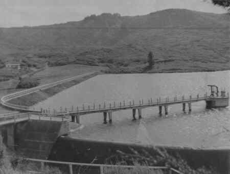 The Waitakere Ranges have had a variety of uses; farming, forestry, recreation and not least as a source of water for the ever growing Auckland region. Just beyond Laingholm you reach the first of the reservoirs, the Lower Nihotupu. Opened in 1948, this picture shows the Parau Dam full for the first time.