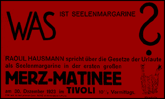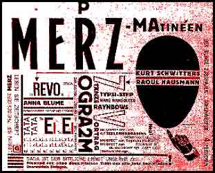 Las obras de Schwichters, a diferencia de los cubistas, futuristas y demás (quienes introducían piezas de otros materiales en sus obras para que quedaran mimetizados con el conjunto), sólo se componían de ése "material heterogéneo y mostrenco recogido de las ruinas. Schwichters, a pesar de ser rechazado por el Club Dadá, bajo la sospecha de ser un poeta Romántico y apolítico con modales pequeñoburgueses, así como sentir la hostil indiferencia de Hausmann, funda su propio movimiento para distanciarse de Club Dadá. Para ello utiliza un término que defina su actitud, su arte y a él mismo . El término es el de MERZ, e ilustra su método de trabajar con los objetos. Schwichters tomó un anuncio del banco Kommerz-und-Privatbank para hacer un collage lo recortó y convirtió lo banal en dadaísmo transcendental. Entre otros motivos, Kurt no fue aceptado en dadá por su libro de poemas aparentemente irracionales Anna Blume, de tintes románticos. Huelsenbeck expresó lo siguiente en Dada Almanach: "- Dadá rechaza por principio y de manera enérgica trabajos como la célebre Anna Blume del Sr. Kurt Schwichters". "Para mí, Merz se ha convertido en una concepción del mundo. No puedo cambiar ya mi punto de vista. Mi punto de vista es Merz". De esta forma, el único miembro de Merz defiende su autonomía con respecto a futuristas, expresionistas o dadaístas. |