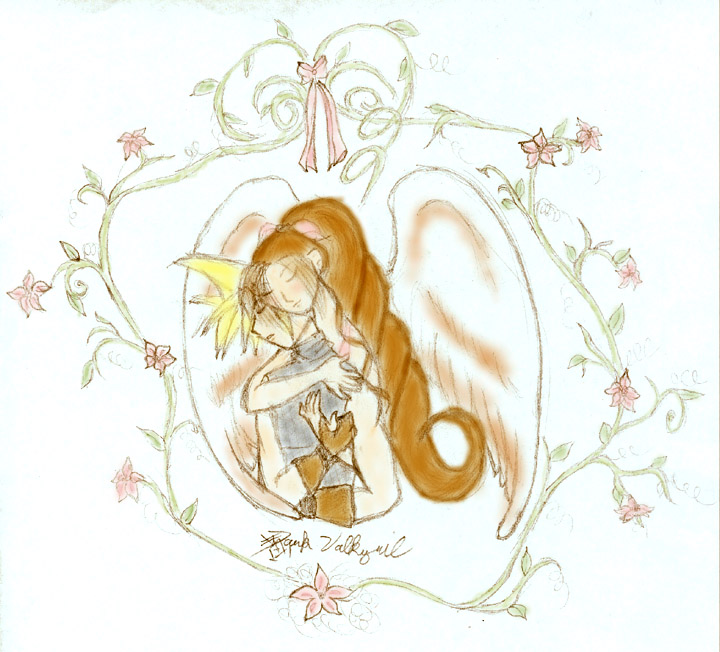 | Ok, I love Cloud more than anything except Ender and Seung Mina, but I'm not one of the stupid jealous fangirls that won't let "their man" go, even to the character that they love and loves them back. I mean, I had a thing against Kairi for those shallow reasons, but I got over it and accepted that she was in fact a pretty cool character. But even still, I love the idea of Cloud and Aeris. They are the perfect couple!! I love Aeris so much because she's such a brave and wonderful character, and she's exactly the type of person that Cloud needs. I would never in any way shape or form feel jealous of Aeris or think badly toward her without getting the incessant urge to commit seppuku. BIG-ASS SPOILER!! DO NOT READ IF YOU HAVE NOT BEATEN THE GAME YET!! LALALALALALA!!! When she died I was crying for a day straight. I forever hated Sephiroth, set up a memorial for her in my room, and kept thinking, "Oh no, Cloud must be so devastated!!" Getting to the point of all this, I wanted to show that even after her death Cloud loves Aeris more than anything, and she still loves him with all she's got. Maybe love does indeed cross all boundaries, even the one between life and death. I imagine when he's all alone Cloud can sometimes feel Aeris there with him, embracing him and reminding him of her love. Sappy stuff from Dark Val? IMPOSSIBLE!! |