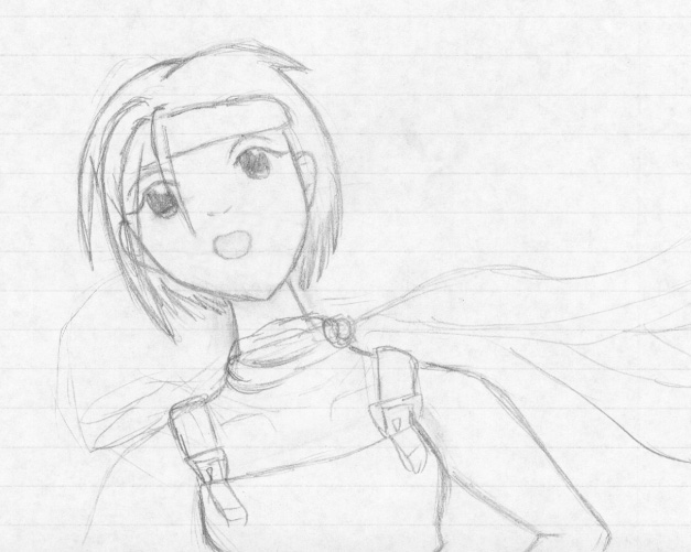 A little doodle I did at the end of Science class. It was originally going to be Sora giving his cheese-eating grin *that I love SO MUCH ^^* but somehow morphed into Yuffie.