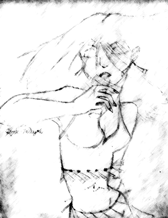 | Approximately four hours after I finished the Jim picture, I'd only gotten three hours of sleep and I just couldn't drift off again, so I spent the morning drawing this. Unfortunately I drew it way too lightly and didn't want to ruin it by darkening the lines (that happens a lot) so I had to use some filters in Photoshop to make it visible. Don't know who she is, just some random person (who I didn't bother shading...). Outfit is based somewhat loosely off of something I saw in Ayumi's Fly High video. Drawn while listening to (and somewhat inspired/driven by) "Look to the Sky." |
