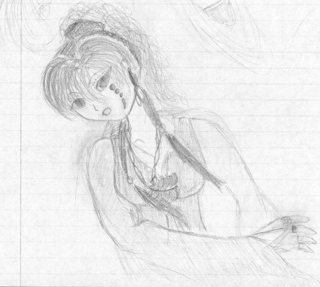 | Another concept art for the book Momo and I are working on. This is another one of my characters, Raven. She's a black mage/wizard. She looks a lot like Lulu in some pictures, and she's got kind of this .hack face tattoo thing goin' on, but both of those things were completely unintentional. |