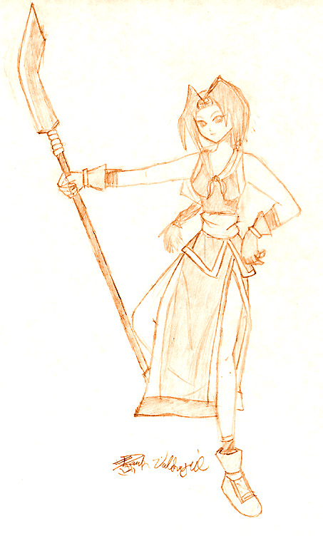| This is another picture I drew of my homie, Seung Mina. I wanted to take more of an anime-ish approach to this one, and I think it worked out pretty well. I like how her outfit came out. I don't know what I was doing with the pose, though, I just wanted something that would show her entire uniform. |