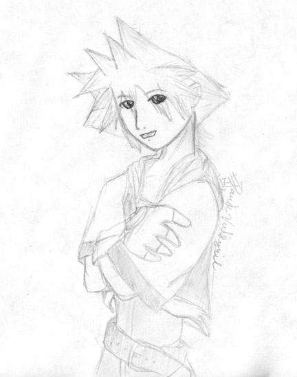 | During another bout of boredom at my grandmother's house, I attempted to draw a picture of Sora and Riku back-to-back. I drew Sora first, and as you can see Riku didn't turn out good enough to make the final cut. To tell the truth, I'm not sure Sora did either. He looks...odd |