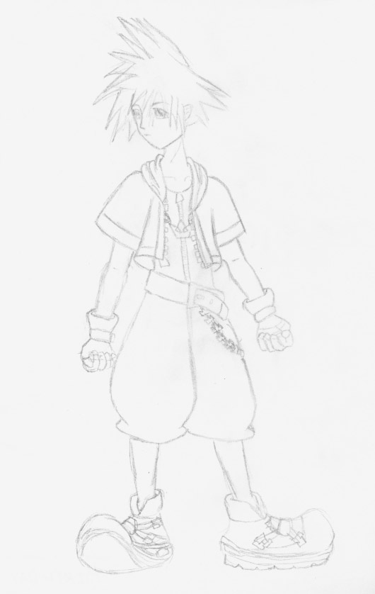 | I think this was the second fanart ever that I drew of Sora. It started out as a doodle on one of my Latin papers, but when I realized it was all the way over in the margin and I had no room to finish it I traced it onto some tracing paper and drew the rest of it ^^. He looks really young here, but all my friends say he looks more his age than my other drawings suggest. I was originally going to draw him holding the Kingdom Key in his right hand but i got lazy. I suppose this should probably be in the "Collaborative Arts" section because Rinoa actually drew the eyes for me *this was back when I'd first started drawing again,after a three-year hiatus* but I'm lazy, as I have mentioned many times before. |