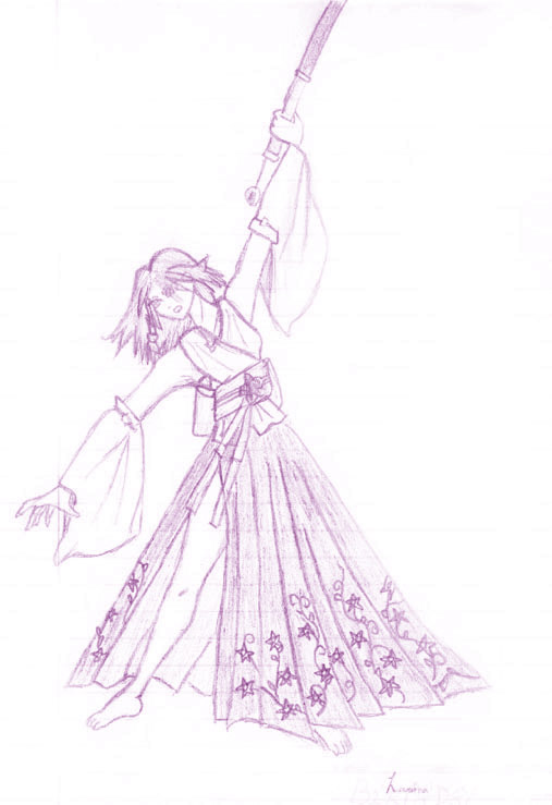 | Yuna is such a cool character. A lot of people give her sass because she can seem boring or dull as a character at times, but she's not nearly as under-developed as a lot of people think she is. She's steadfast and determined and willing to sacrifice everything for the greater good, even herself. I drew this picture because I wanted to show that even though she is the beautiful summoner, daughter of the High Summoner and something of a frail flower, she has a tough side to her that most people wouldn't suspect. Plus, she's fun to draw with her sleeve thingies. I tell you though, drawing the flowers and vines on her skirt took longer than anything else did. |